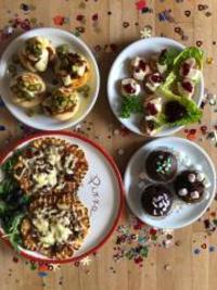 Dabei kreieren wir spezielle Pizzawaffeln und machen kleine, aber feine Brie-Kräcker. Niemals fehlen dürfen Mini-Burger und Schokomuffins. Allein die Gedanken daran lassen einem das Wasser im Mund zusammenlaufen.