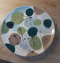 Als Rohling steht ein Teller zur Verfügung. Die bemalte Rohkeramik wird im Anschluss glasiert und im Brennofen gebrannt. Danach ist sie bereit zum Mitnehmen und Benutzen.